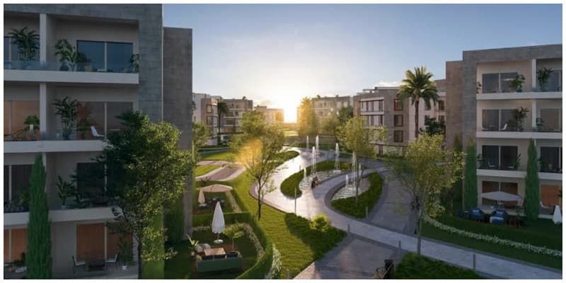 صورة لكمبوند المحور 6 أكتوبر والمساحات الخضراء الموجدوة فيه.